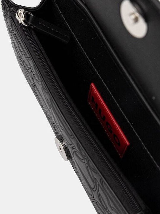 Petit sac de la collection HUGO, en cuir écologique. Il est doté d'une fermeture à rabat d'aile fixée par un aimant et d'une sangle non amovible sans réglage.