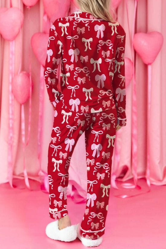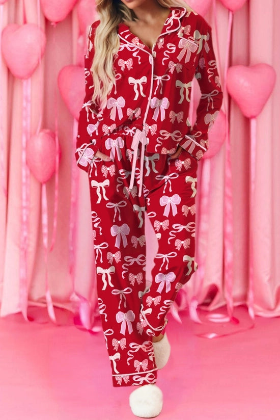 Ensemble de pyjama 2 pièces style haut chemise à imprimé nœud doux long