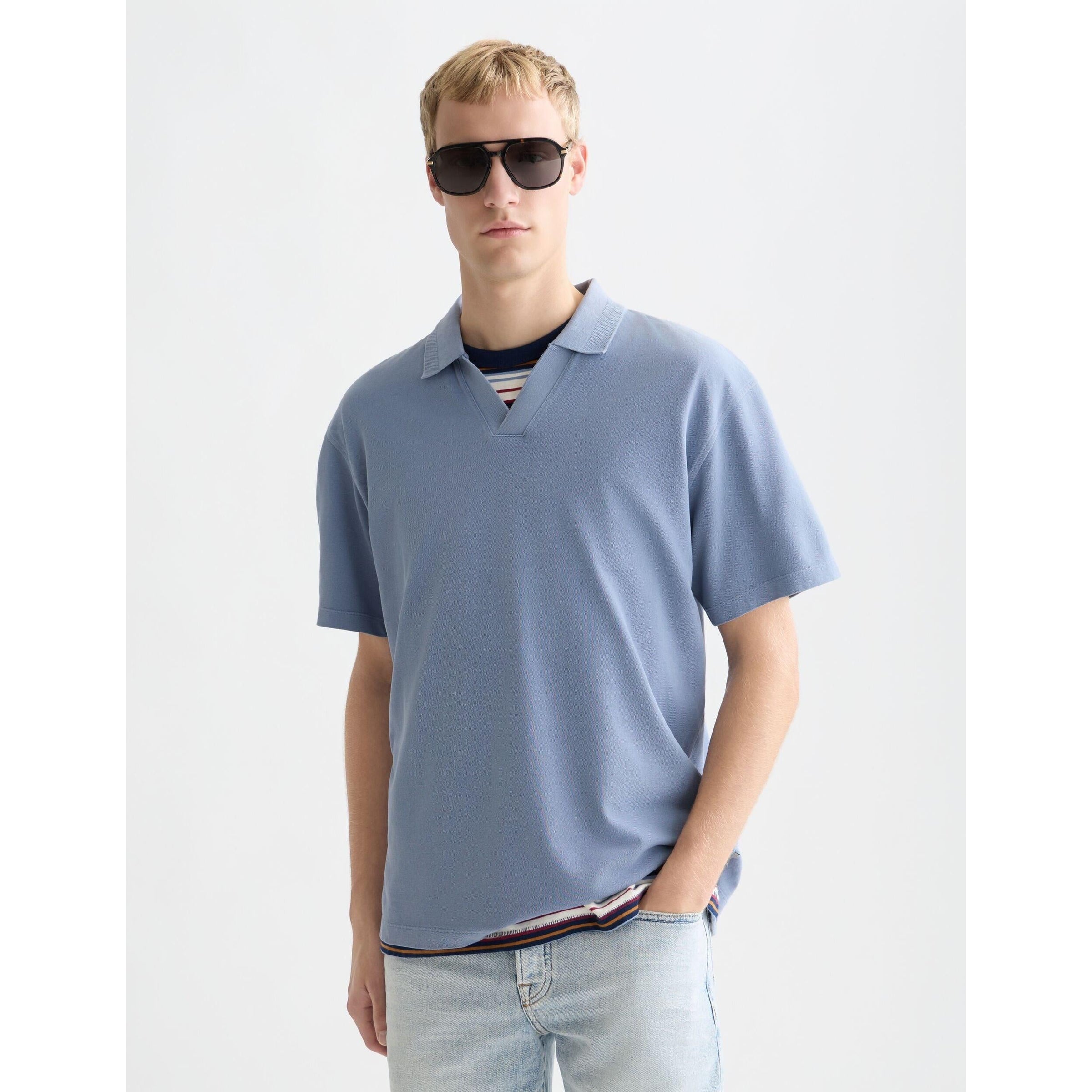 Avec une coupe décontractée, ce polo offre un style confortable et décontracté. Le tissu piqué teint en vêtement lui donne un look unique et vécu, tandis que le détail à trois croix ajoute une touche subtile de caractère.