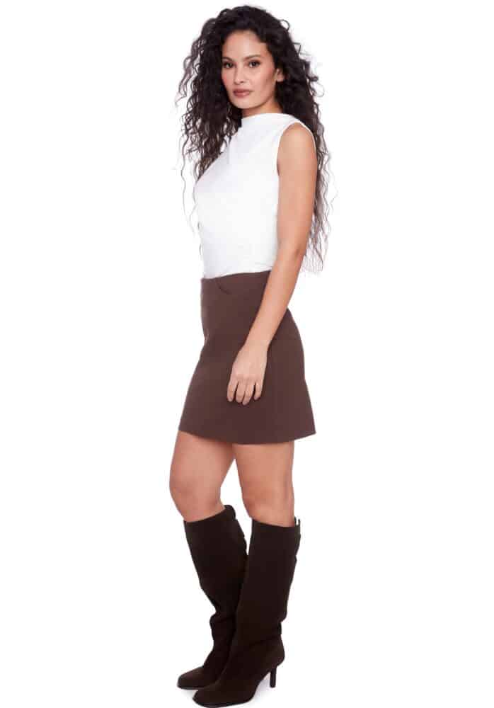 Un incontournable de l'automne amusant, le mini classique obtient une mise à niveau moderne avec un tissu Ponte de luxe et une longueur mustre. De riches tons d'automne rehaussent l'ambiance minimale, injectant un bord sophistiqué et une polyvalence « assorti à tout ».