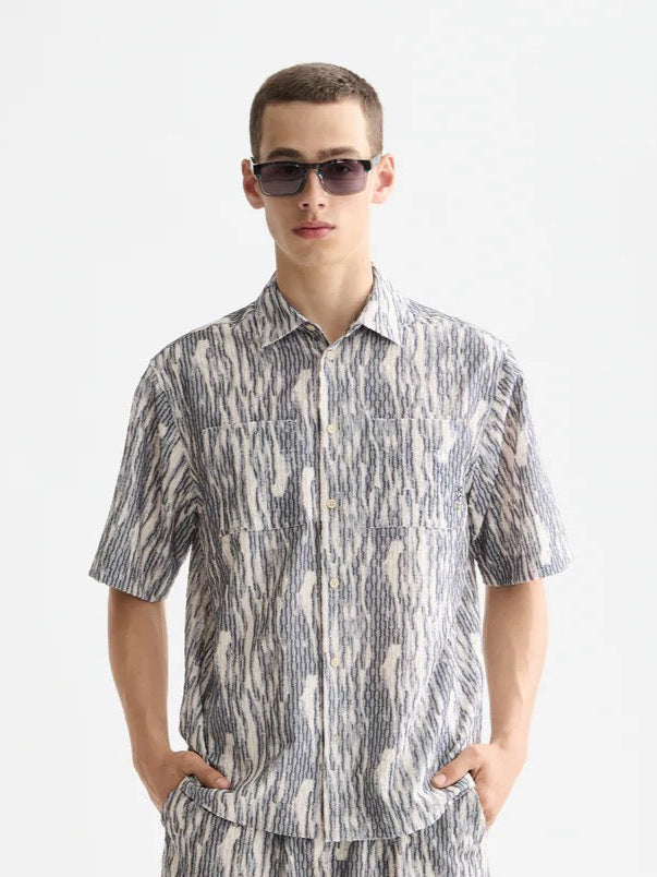 Dotée d'une riche texture jacquard, cette chemise à manches courtes allie confort et structure.