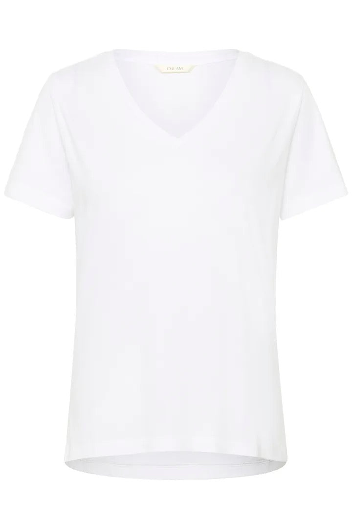 Ce t-shirt femme à col en V présente une coupe droite confortable. Manches courtes et silhouette classique adaptées à un usage quotidien et superpositions faciles.