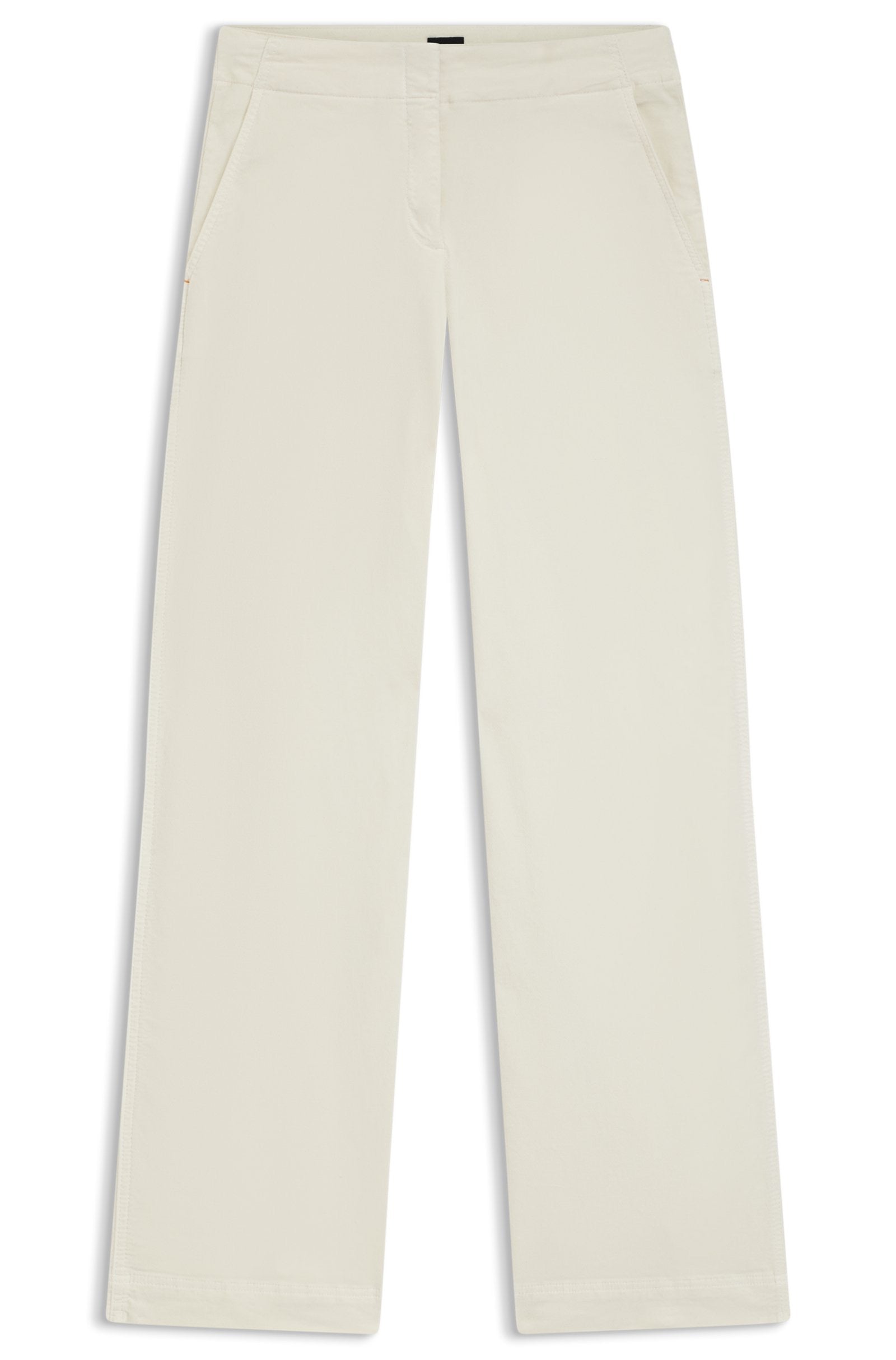 Fabriqués en velours hivernal en coton extensible, ce pantalon BOSS Womenswear est une option décontractée fraîche. Jambe droite avec fermeture à crochet et œil propre.