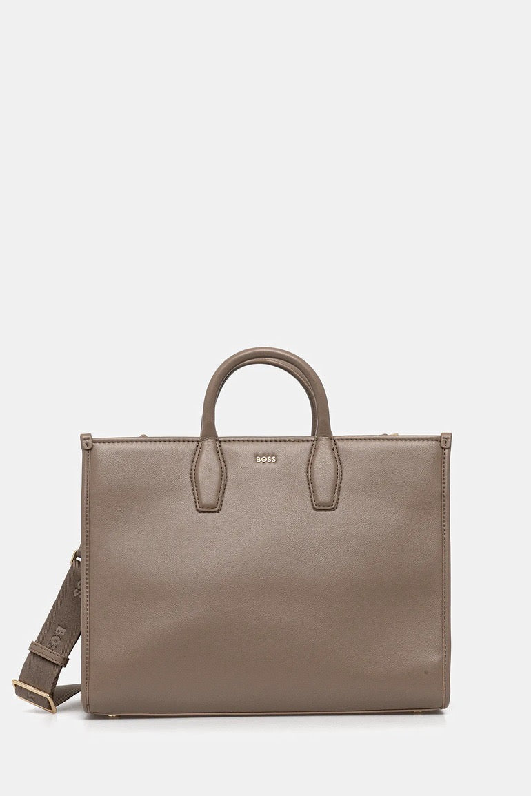 Avec du matériel poli dans un ton doré, ce sac BOSS Womenswear est une façon chic de porter les nécessités de tous les jours. Bracelet détachable avec logos tonaux. Mesures : 27,5 x 36 x 12 cm